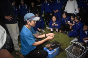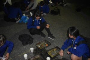 1日目の晩は、明日のソロ調理の練習として、メタルマッチでの火起こしを体験しました。