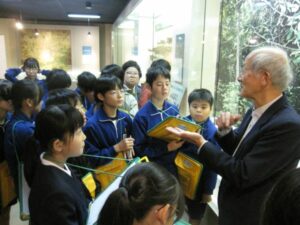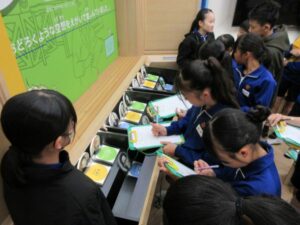 最初に、星の杜小学校に設置されている「ふるさと先人コーナー」を訪ね、ふるさと魚津の先人たちについて動画や展示物から学びました。