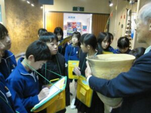 次に、歴史民俗博物館を訪ね、魚津の歴史について教科書で学んだことと比べながら、説明を受けました。