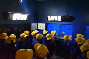 水族館では、展示された魚を見たり、水族館のひみつについて説明していただいたりしました。