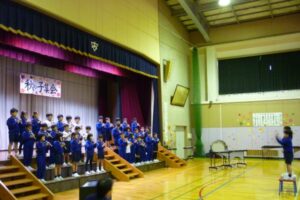 歌「とどけよう このよろこびを」やリコーダー奏「よろこびの歌」などを披露しました。