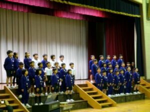 子供たちは、集会のときとはまた違う緊張感をもって、真剣にそして音楽を楽しみながら披露することができました。