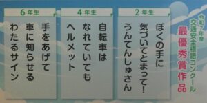 そして、集まった標語を審査して最優秀作品を学校前に掲示する取組を継続しています。