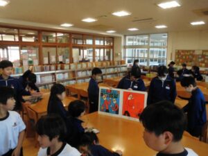 今日は、図書委員会の子供たちが大型絵本の読み聞かせをしていました。