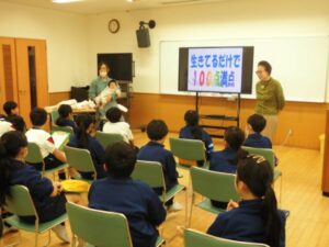 今日は、クイズを取り入れながらアルミ缶リサイクルの仕組みについて、紹介してくれました。