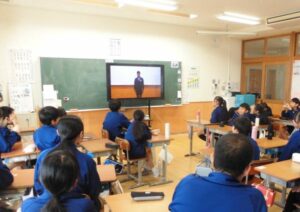 寒さ対策や感染症予防の観点から、体育館には集まらず、各教室で動画を視聴しての集会となりました。