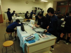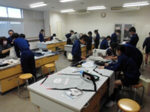 6年生は家庭科でエプロンづくりに取り組んでいます。
