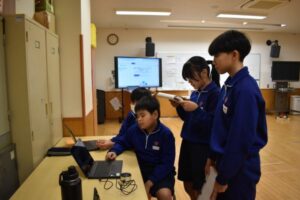 外国語科の授業の一環として、台湾の忠義小学校6年生とオンライン交流を行いました。