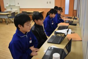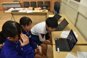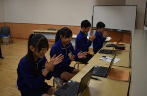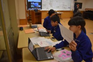 グループに分かれ、事前に準備した資料を用いながら魚津市や道下小学校の紹介をしたり、台湾の小学校の様子を聞いたりしました。