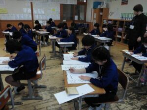 どの子も練習の成果を発揮できるよう、真剣に書いていました。