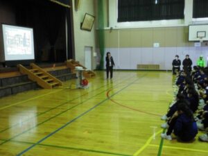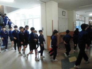 全校児童が不審者がいる場所を避けて、体育館へ避難しました。