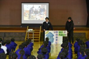 子供たちが、実際に起こってしまった場合のことを想定しながら真剣に訓練に取り組んでいる様子が印象的でした。