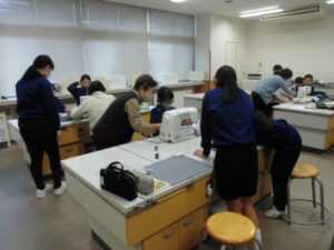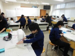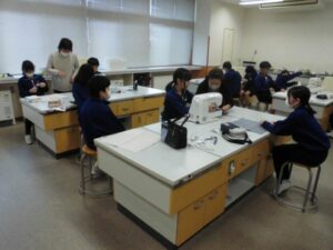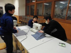 5年生は家庭科で初めてのミシンの学習にに取り組んでいます。