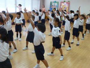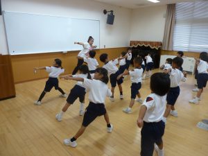 この日は講師の先生に来ていただいて、校歌ダンスの練習をしました。